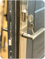Fiberglass entry doors provide a very high level of security, comparable to steel doors. At Trust Build Windows and Doors, every fiberglass door is engineered with durability and strength in mind. Each unit features two reinforced fiberglass panels with a dense, insulated core, creating a structure that resists impact while also improving energy efficiency. For added protection, we recommend a Ferco multi-point locking system, which secures the door at the top, middle, and bottom. This advanced system functions like a safe-box lock combined with a deadbolt, offering homeowners superior peace of mind.